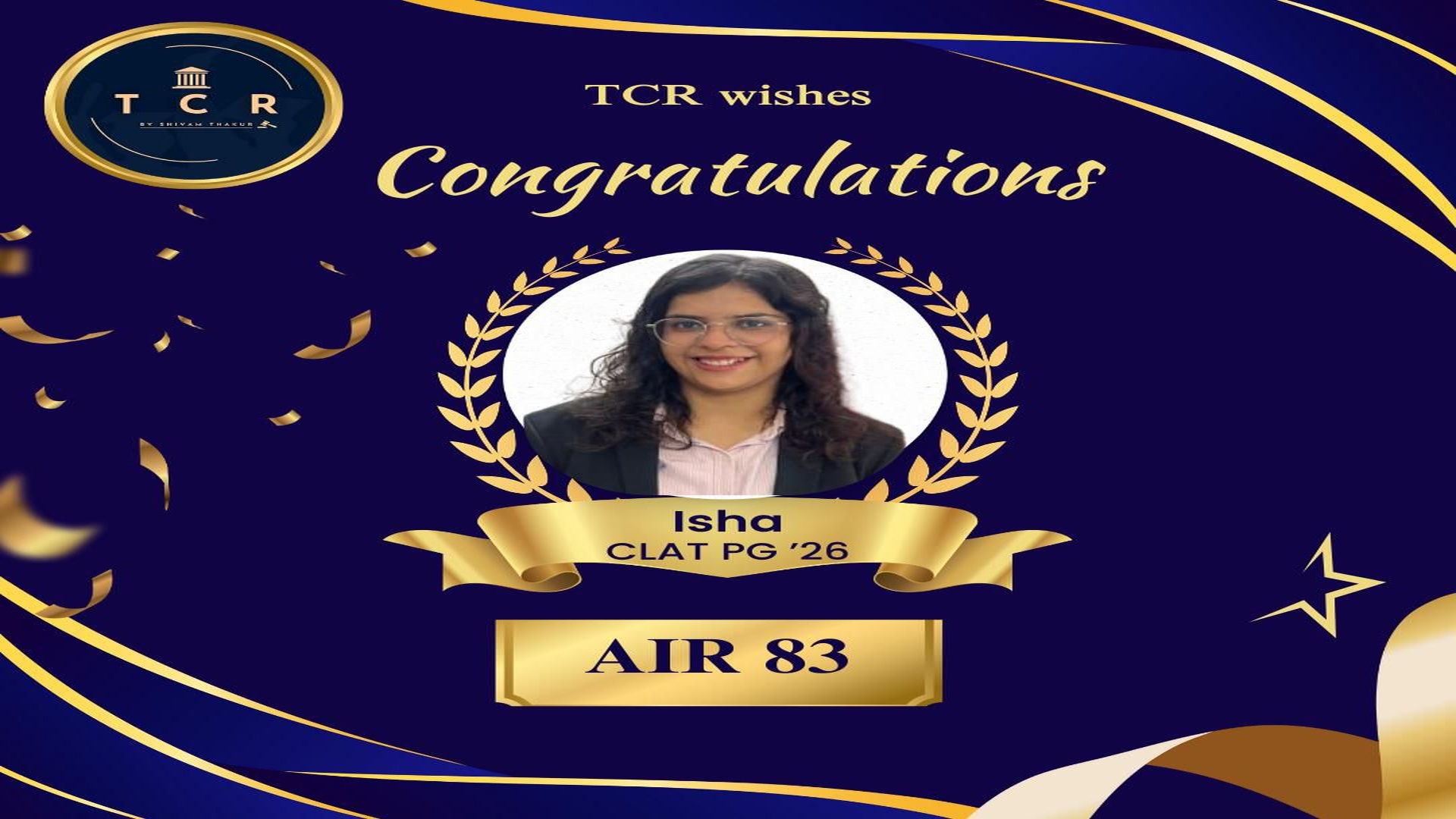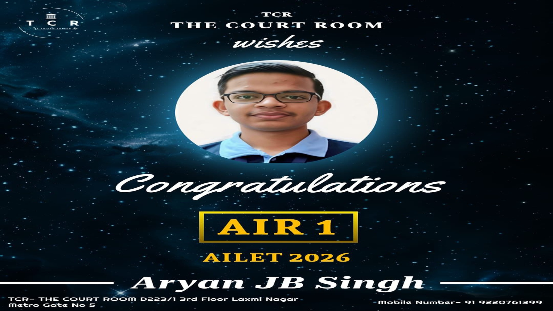 Achieving AIR 1 in AILET 2026 is a dream come true, and the entire credit goes to TCR – The Court Room and the exceptional mentorship of Shivam Thakur Sir. From the very beginning, TCR provided me with a clear, result-oriented roadmap tailored specifically for AILET, which removed all confusion and anxiety from my preparation journey.
